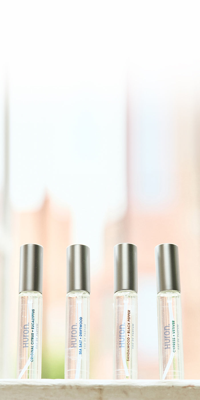 Our fragrance compositions do contain common allergens. Below is a list of allergens and potentially sensitive fragrance compounds in Huron fragrance. If you have a question about a specific allergen or ingredient, please send us an email at help@usehuron.com and we’ll get back to you right away.AllergensOriginal Citrus + Eucalyptus: - Benzyl Salicylate: a synthetically made and naturally occurring organic compound with a mild balsamic, sweetly floral scent.- Citral: A naturally occurring scent ingredient found in the oils of various citrus peels.- Citronellol: a naturally occurring ingredient derived from plants such as rose, geranium and lemongrass with a grassy, citrus-like scent.- Geraniol: a naturally occurring scent ingredient with a distinct rose scent found in various essential oils such as rose oil and citronella oil. - Limonene: a scent compound found in the rind of citrus fruits, such as lemons, limes, and oranges - Linalool: a naturally occurring essential oil found in many flowers and spices to provide a fresh, clean, mild light floral odor.Sandalwood + Black Pepper: - Alpha-isomethyl ionone: a synthetically made and naturally occurring organic compound that reproduces the smell of violets, with a sweet and powdery touch.- Coumarin: a natural sweet-smelling compound found in many plants, including cinnamon, tonka beans, and sweet clover- Limonene: a scent compound found in the rind of citrus fruits, such as lemons, limes, and oranges - Linalool: a naturally occurring essential oil found in many flowers and spices to provide a fresh, clean, mild light floral odor.